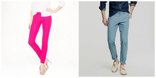 Every well-dressed man and woman must own at least one pair of colored pants. They help to exemplify that you are cool and confident and can dress up any outfit. J. Crew sells a variety of styles.